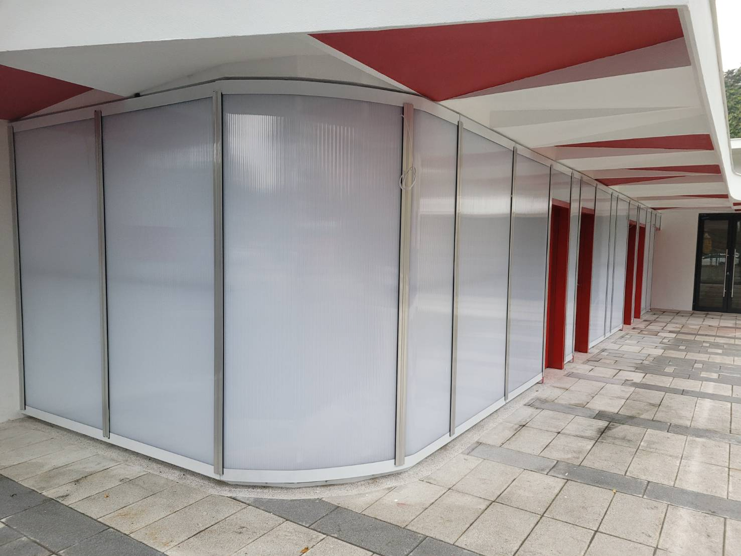 目前在庫均為16mm厚度、1200mm寬度、長度為11.9M。我方並提供原廠鋁壓條系統搭配EPDM防水膠條,可有效達到抗風壓120kg/M以上要求,若用於室內裝修設計部分,美國PLASKOLITE中空板有達到防焰一級測試標準並且可以輕易使用圓鋸裁床進行加工裁切。